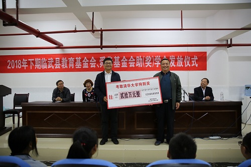 10月16日,临武一中举行2018年下学期助(奖)学金发放仪式,舜华鸭业公司董事长、舜华助学基金会会长胡建文出席仪式。仪式现场,舜华鸭业公司出资61万元,发放给临武一中180名学生每年2000元的生活补助,并奖励特优学生5万元,奖励突出贡献奖老师20万元,捐助学校20万元用于教学。